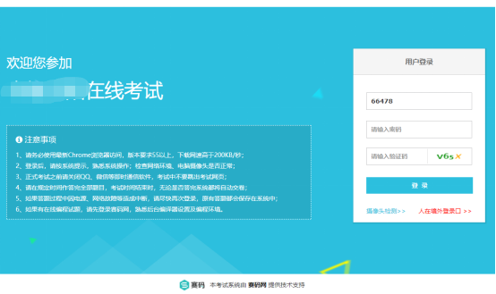2.考生在确认参加后,到考试开始之前的所有时间都可通过短信所附的账号密码,随时登录系统进行测试。请考生在考试开始前,检查并确认自己的摄像头、声卡等设备是否正常工作。因考生个人原因不进行测试,正式考试开考前或参加考试时才发现设备或网络环境问题,导致无法正常参加或完成的,由考生自行承担责任。