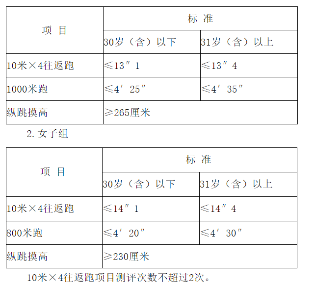 按照《关于印发公安机关录用人民警察体能测评项目和标准(暂行)的通知》(人社部发〔2011〕48号)执行。具体条件如下: