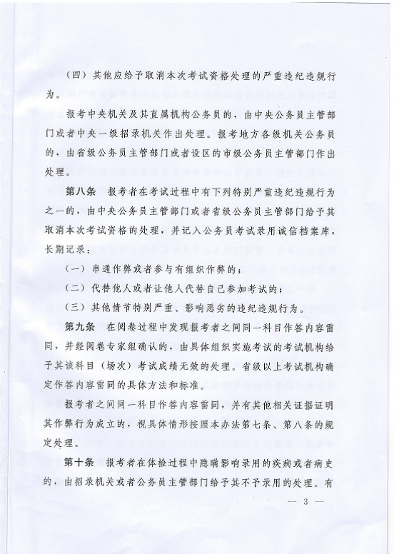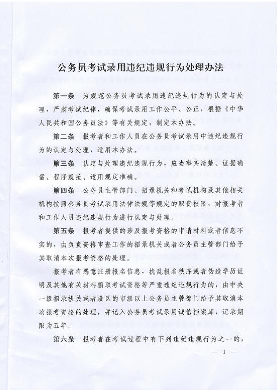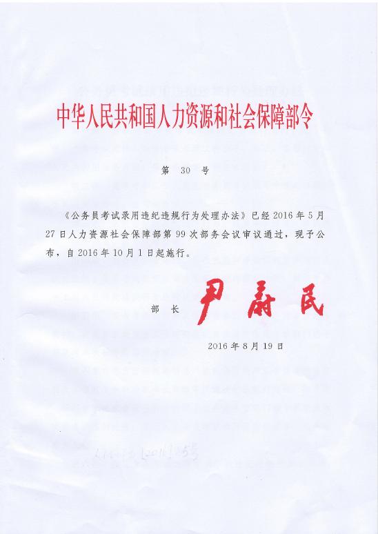 《公务员考试录用违纪违规行为处理办法》第30号令