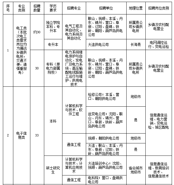 乡镇供电所:电工类专升本毕业生、独立学院本科毕业生、原电力部属院校专科毕业生。