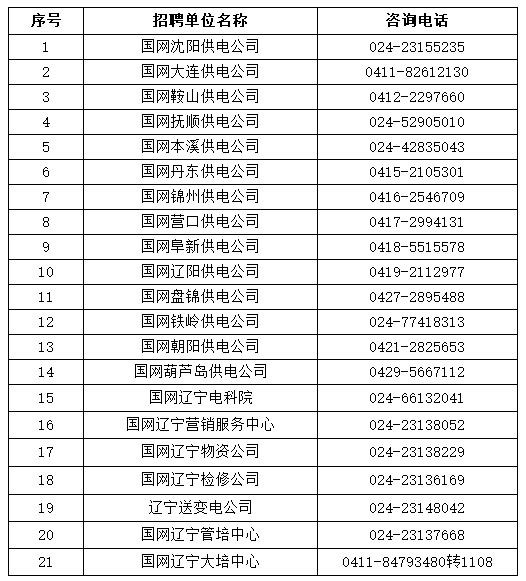 近年来,公司全面落实国家电网有限公司党组决策部署,主动对接辽宁老工业基地振兴战略,坚持稳中求进工作总基调,各项工作不断取得新成绩、新突破,树立了责任央企的良好形象。公司始终高度重视人才引进和培养工作,全面构建了四级四类人才选拔培养体系,形成纵向梯次配备、横向融合协同的人才成长路径,为各类人才脱颖而出、成长成才提供了广阔平台。 根据公司发展需要,现招聘2021年应届高校毕业生,欢迎有志投身于辽宁电网事业的优秀学子踊跃报名。