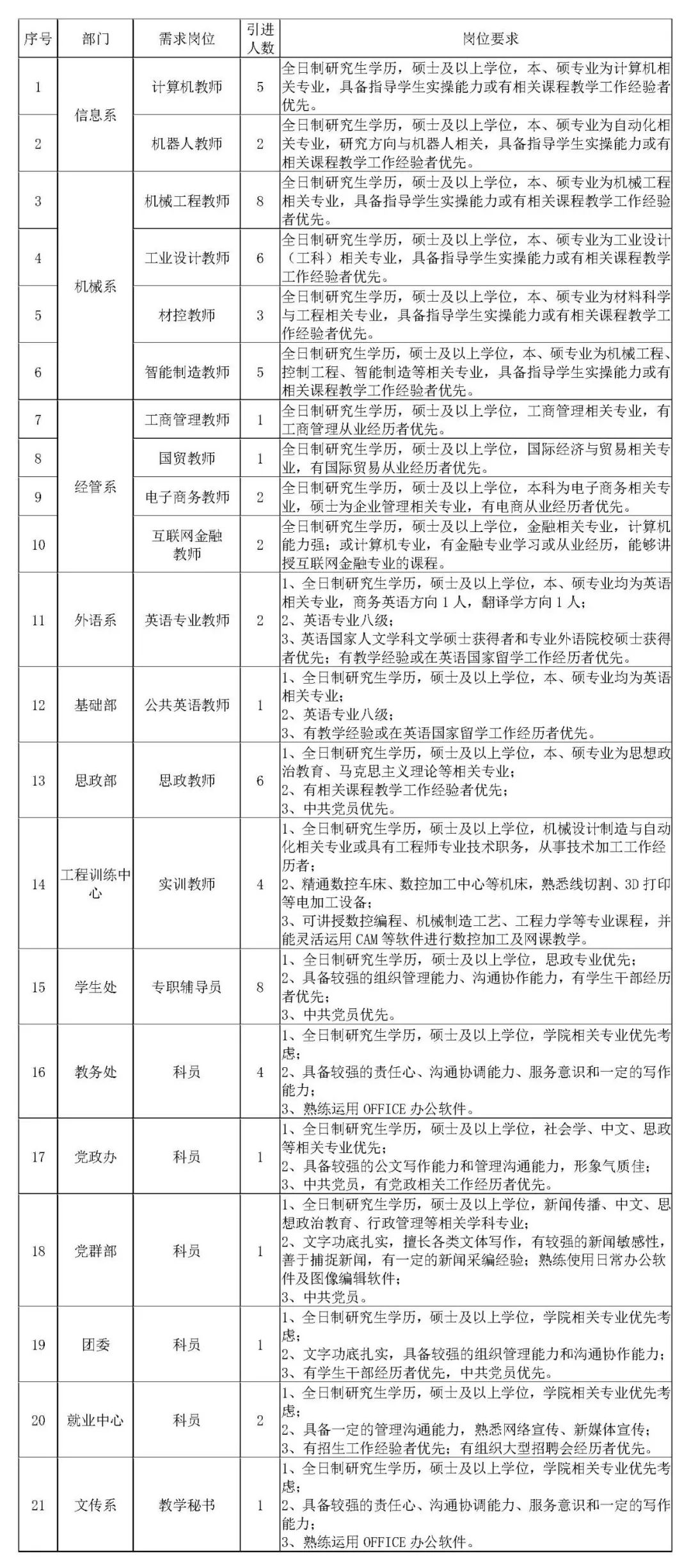 二、招聘岗位及条件