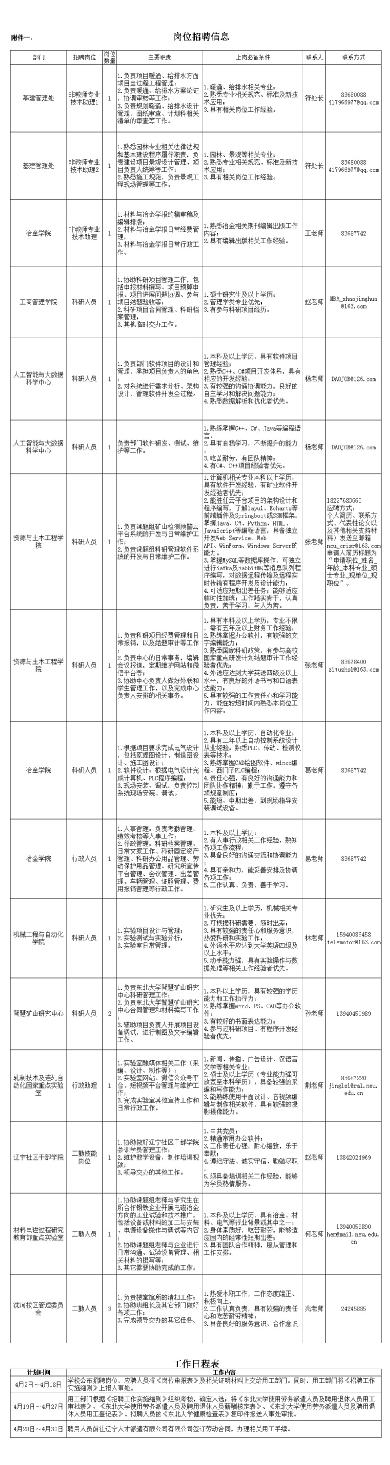 (一)相应岗位具体情况、招聘工作日程及联系人见附件一。