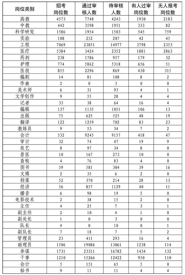2.截至4月10日17时各岗位类别报考情况统计表