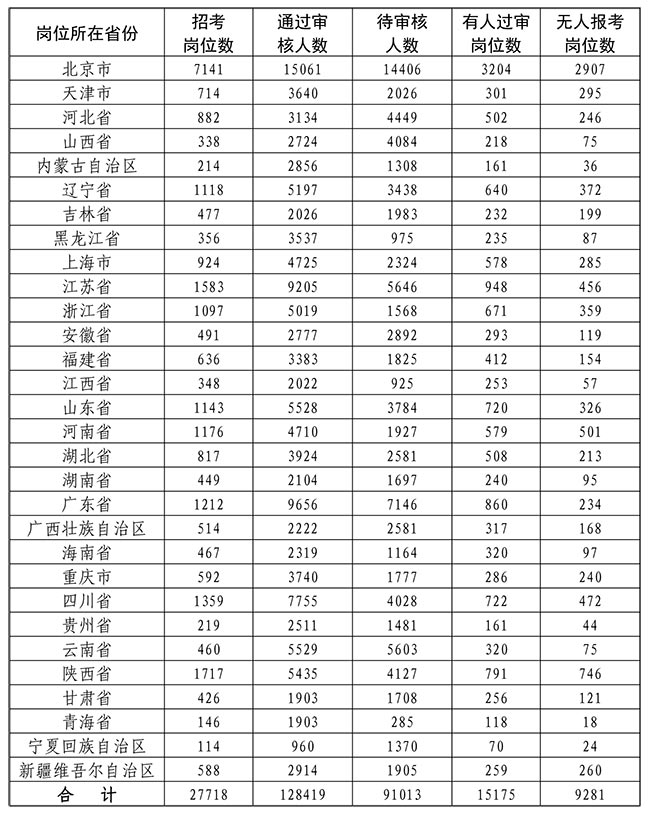1.截至4月10日17时各省份岗位报考情况统计表