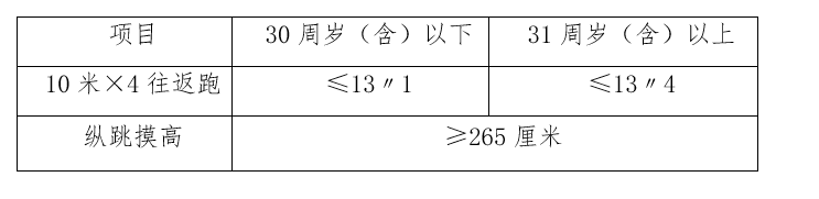 (6)体能测试为通过性方式,即有一项不合格则失去进入下一环节资格。