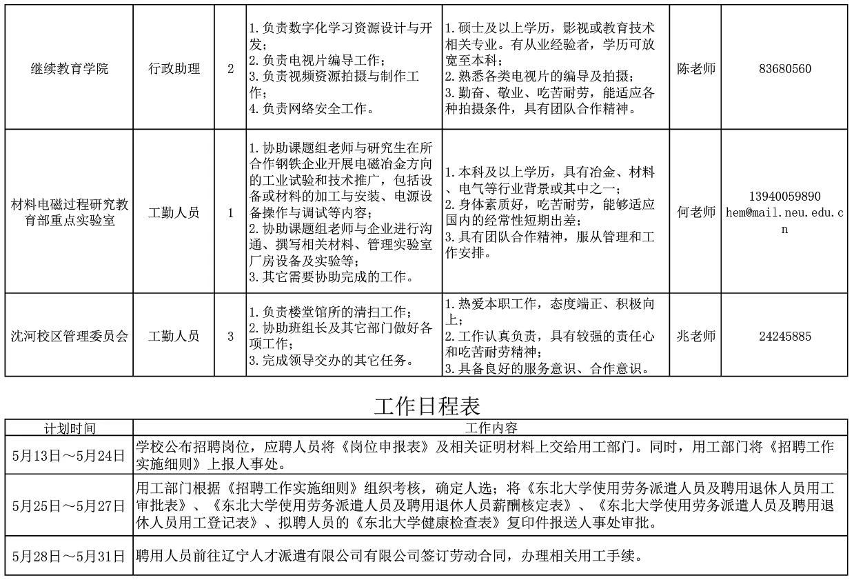(一)相应岗位具体情况、招聘工作日程及联系人见附件一。