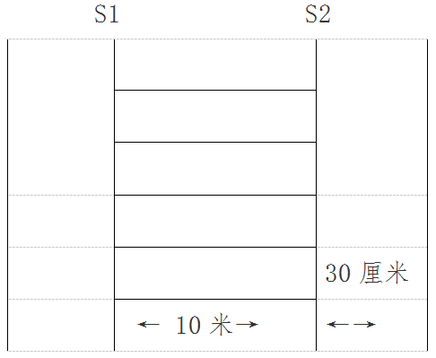 测试方法为:受测者用站立式起跑,听到发令后从S1线外起跑,当跑到S2线前面,用一只手拿起一木块随即往回跑,跑到S1线前时交换木块,再跑回S2交换另一木块,最后持木块冲出S1线,记录跑完全程的时间。记录以秒为单位,取一位小数,第二位小数非“0”时则进1。