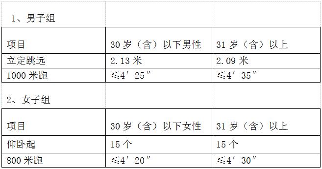 2.体能测试。笔试成绩合格人员,参加体能测试。