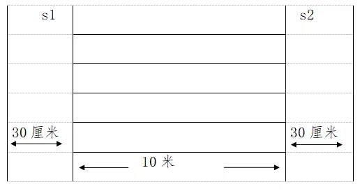 注意事项:当受测者触碰标识物时,脚不要越过S1和S2线。图示如下: