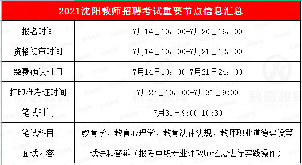 2021沈阳教师招聘考试岗位条件人数及重要节点信息汇总