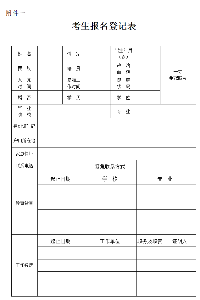 (5)报名登记表,需张贴本人近期免冠一寸照片(附件一);