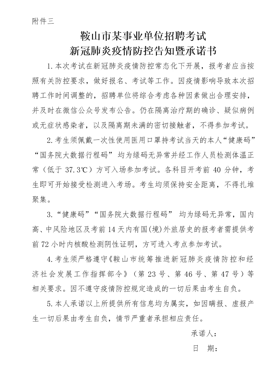鞍山市某事业单位招聘工作人员, 并就有关事项公告如下: