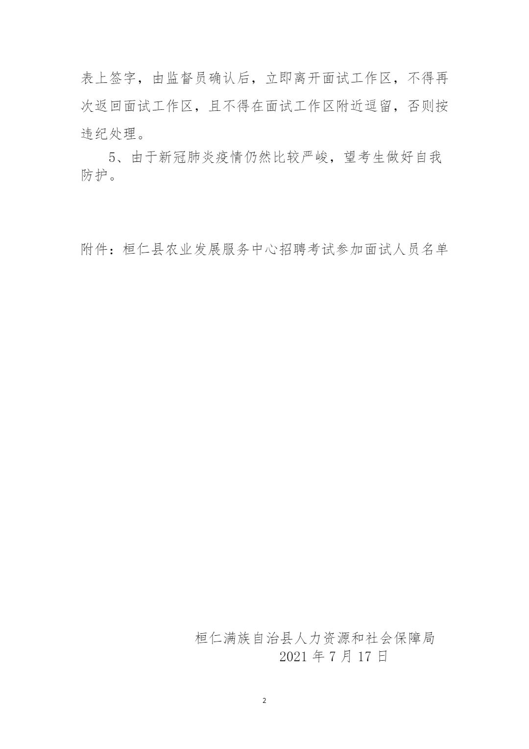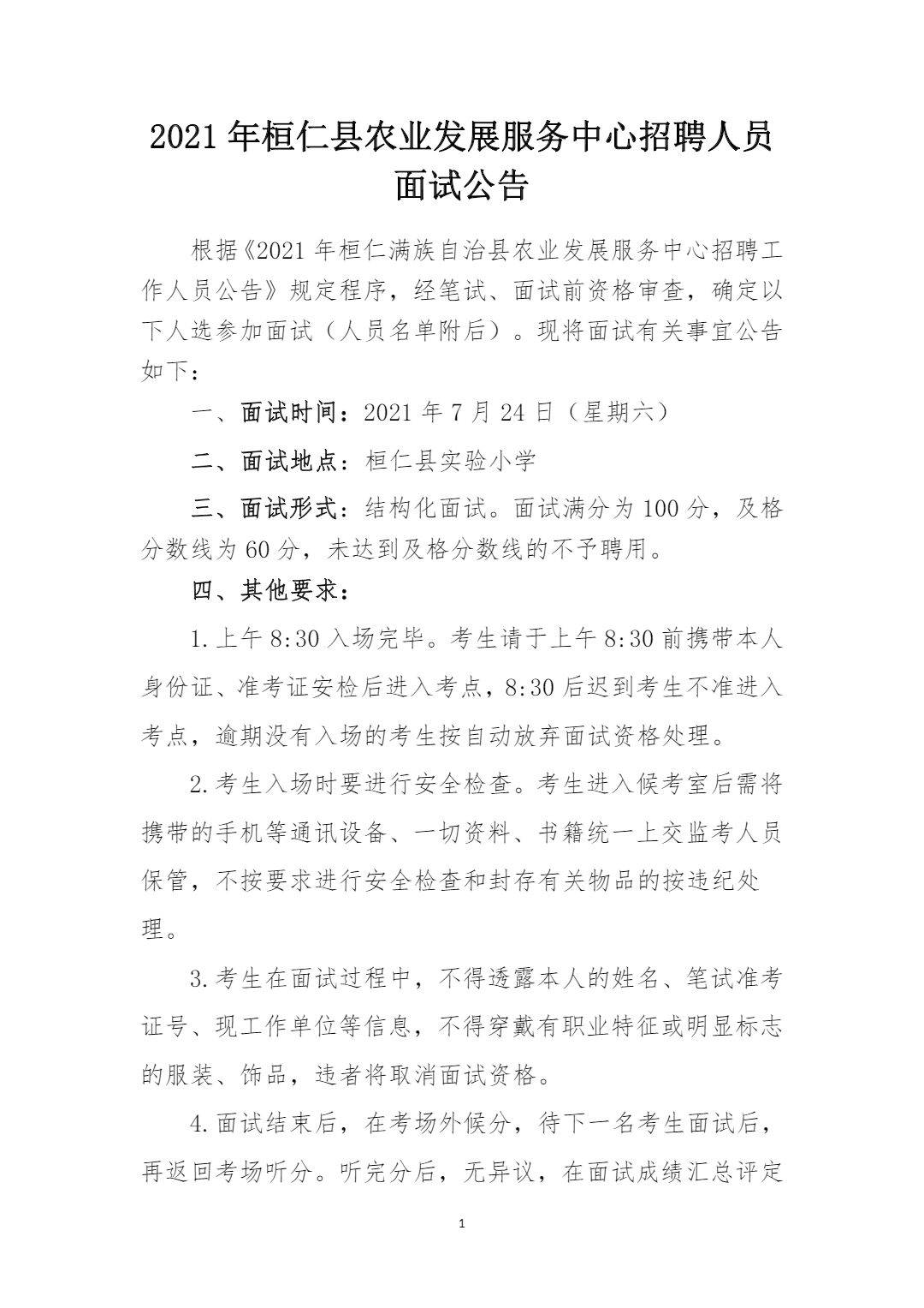 2021年桓仁县农业发展服务中心招聘人员面试公告