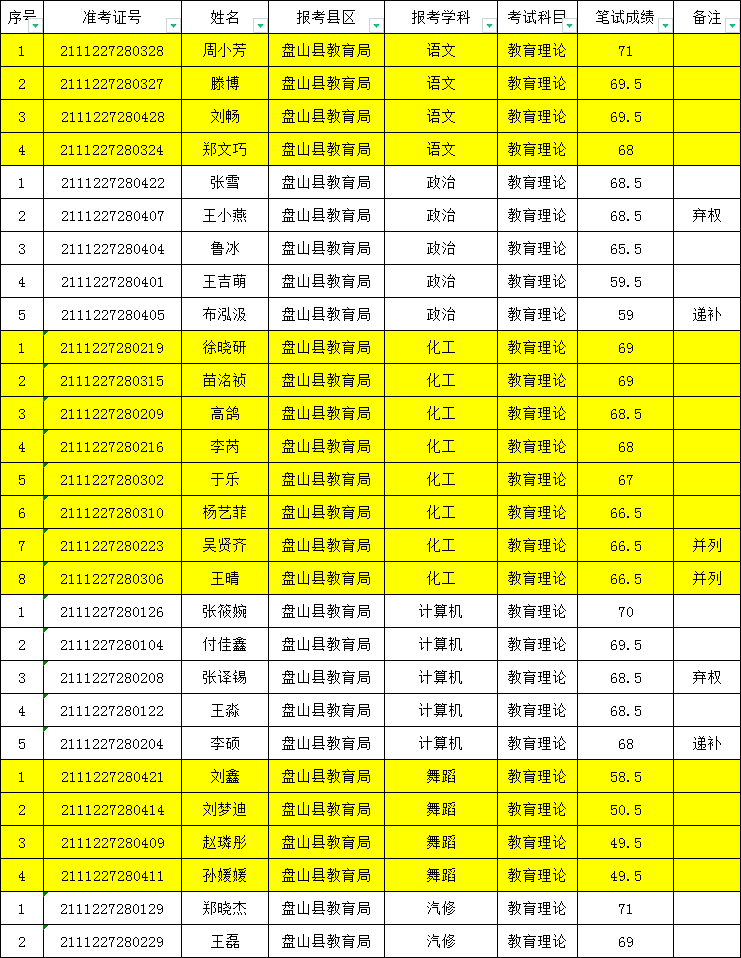 附:2021年盘山县职业教育中心公开招聘教师资格审查人员名单