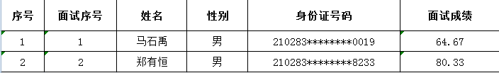 2021年大连市庄河市文化和旅游局公开招聘政府雇员面试成绩