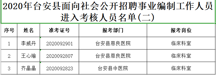 附:2020年台安县面向社会公开招聘事业编制工作人员进入考核人员名单(二)
