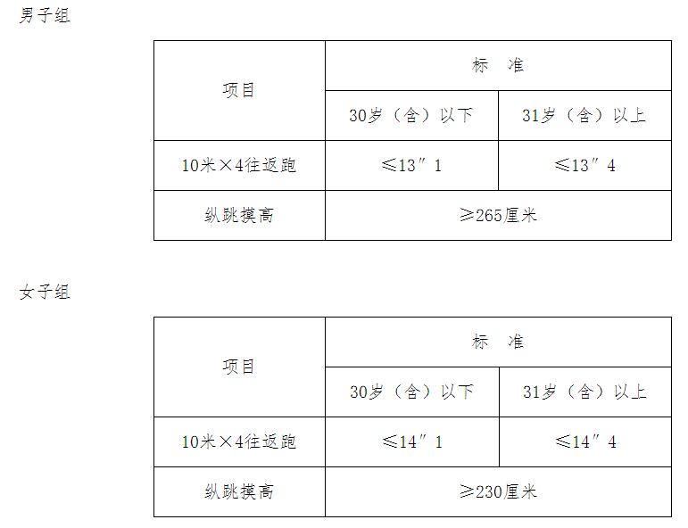 体能测试成绩表两项数据全部通过者视为体能测试通过。