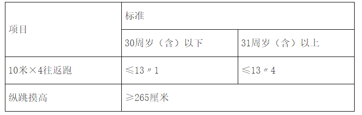 (五)体能测试采用通过性方式,凡其中一项不达标者,视为体能测试不合格,不得进入下一环节,测试成绩详见后续公告;