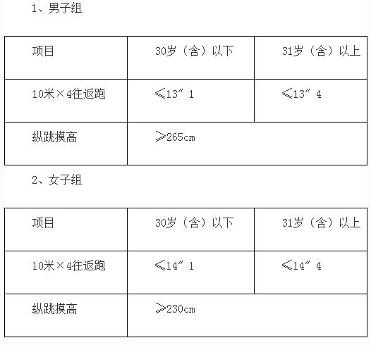 1.入围人选:笔试成绩达到最低合格分数线考生参加体能测试。