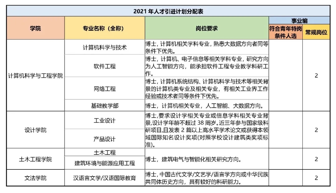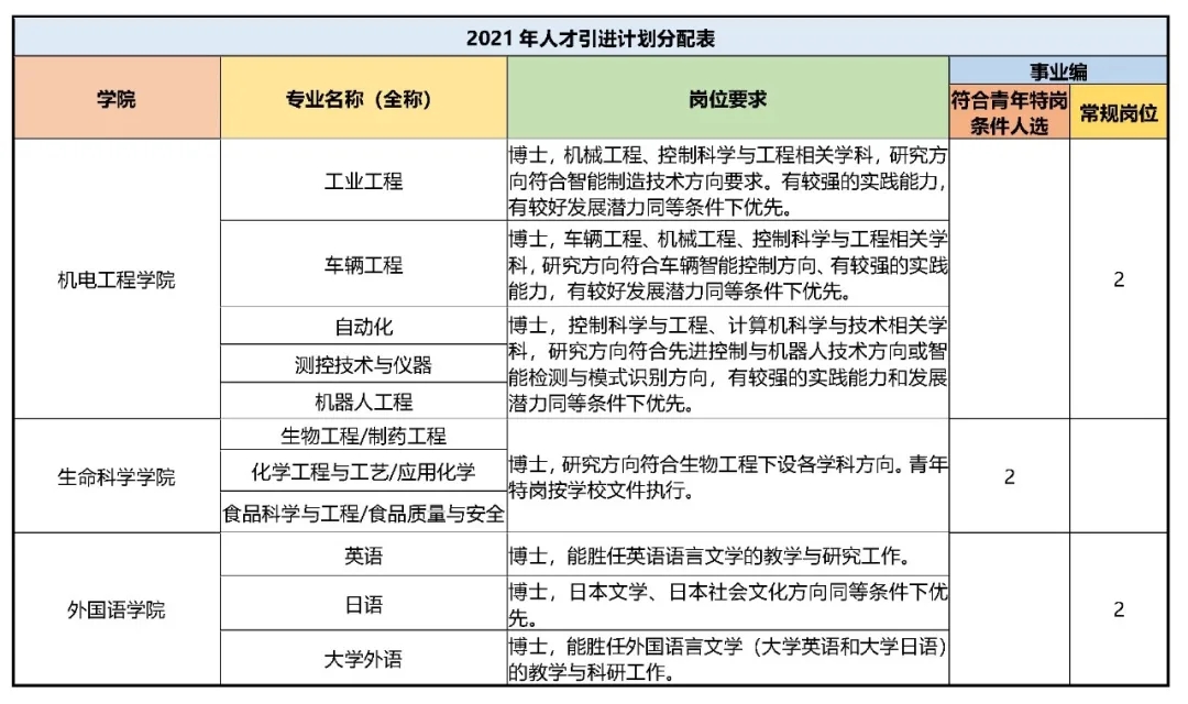 (三)对学校学科专业建设急需的优秀人才,具有工程实践背景或副教授及以上职称应聘教师岗位者,可适当放宽学历、年龄等条件。