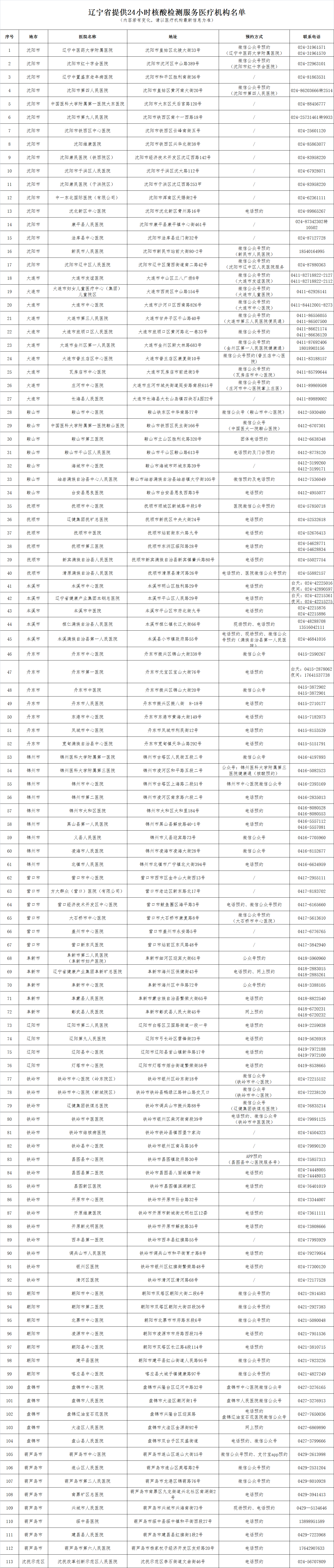 辽宁省提供24小时核酸检测服务医疗机构名单(11月5日更新)