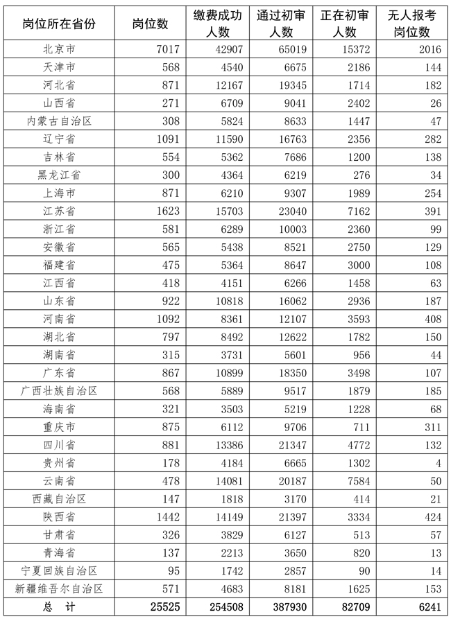 1.截至12月9日18时各省份岗位报考情况统计表