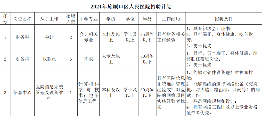 旅顺口区人民医院建院于1945年,是一所集医疗、教学、预防、康复于一体的三级综合医院,是全区人民的医疗中心、急救中心、体检中心。为了满足医院各学科的发展以及人才梯队建设,现面向社会公开招聘合同制工作人员9名。