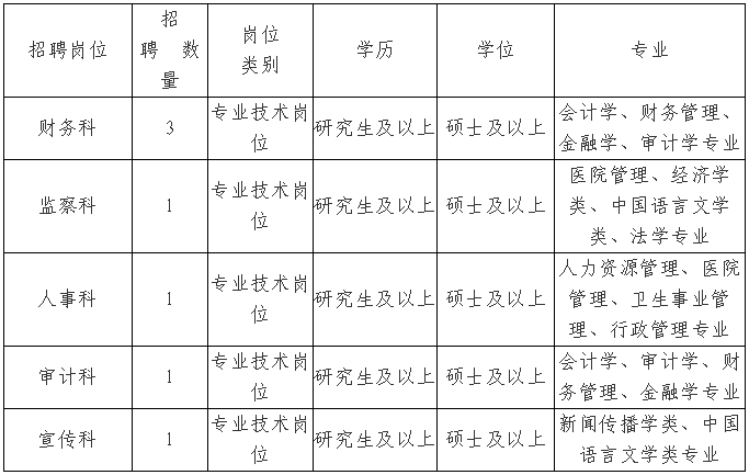 为加强人才梯队建设,满足医院发展的需求,朝阳市第二医院面向社会公开招聘研究生及以上学历、硕士及以上学位人才,具体招聘事项公告如下: