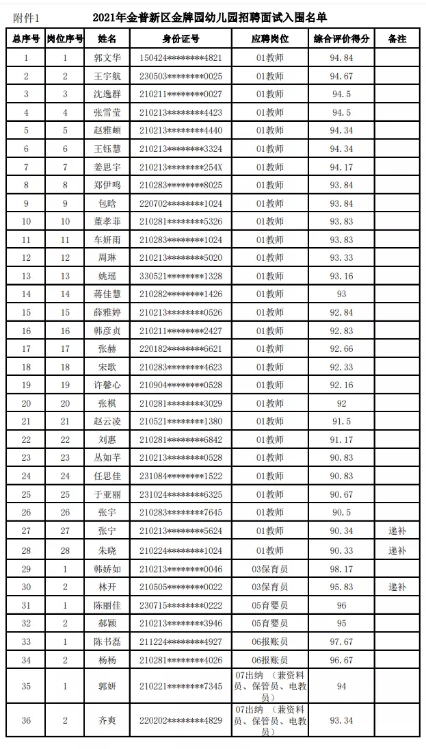 经报名、资格审查、综合评价,本次招聘面试入围人选36名(详见附件1)。