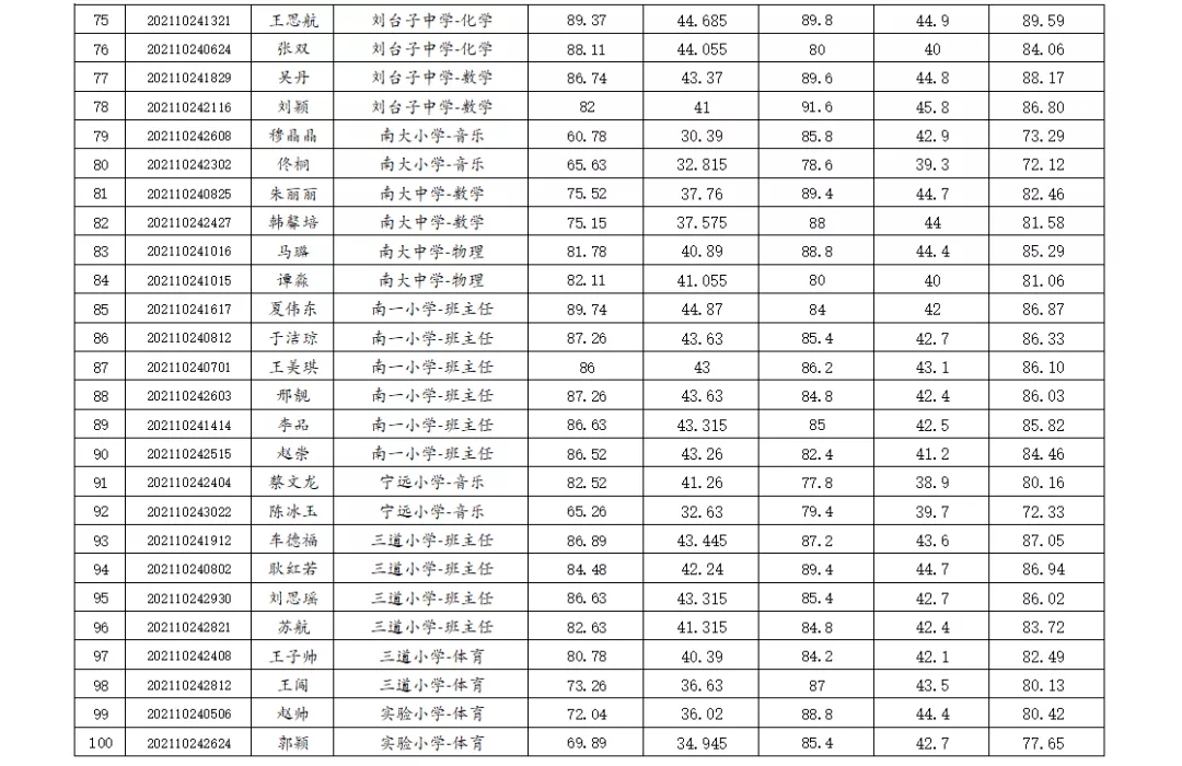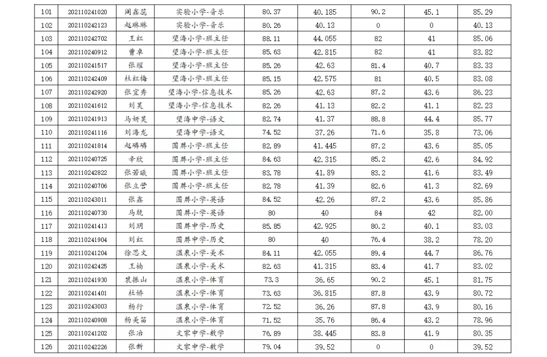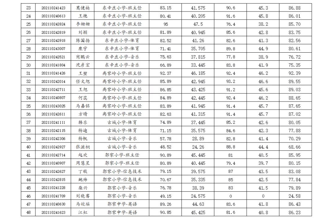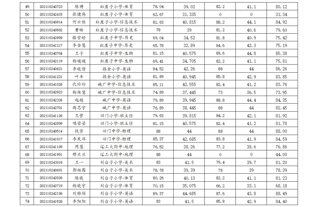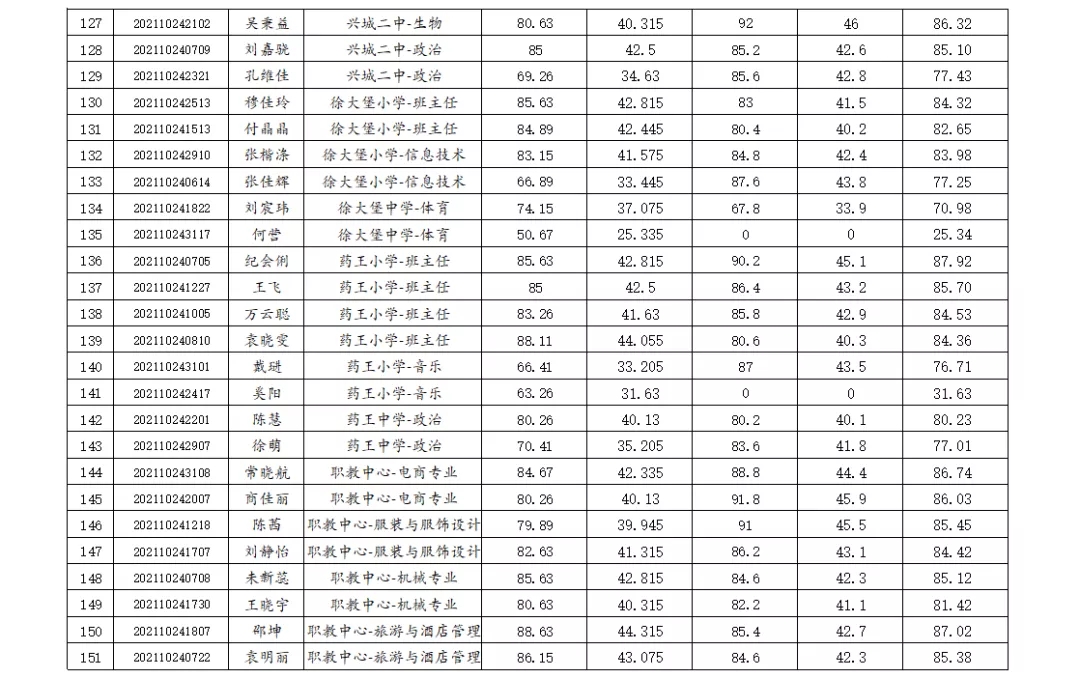 2021年兴城市公开招聘教师笔试、面试加权总成绩公示
