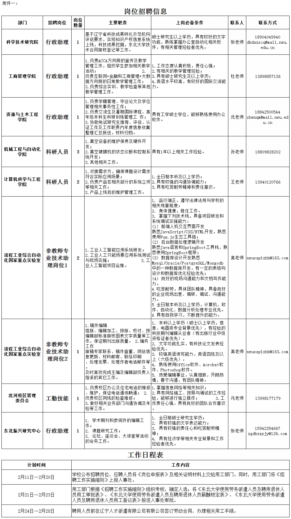 (一)相应岗位具体情况、招聘工作日程及联系人见附件一。(见下图)