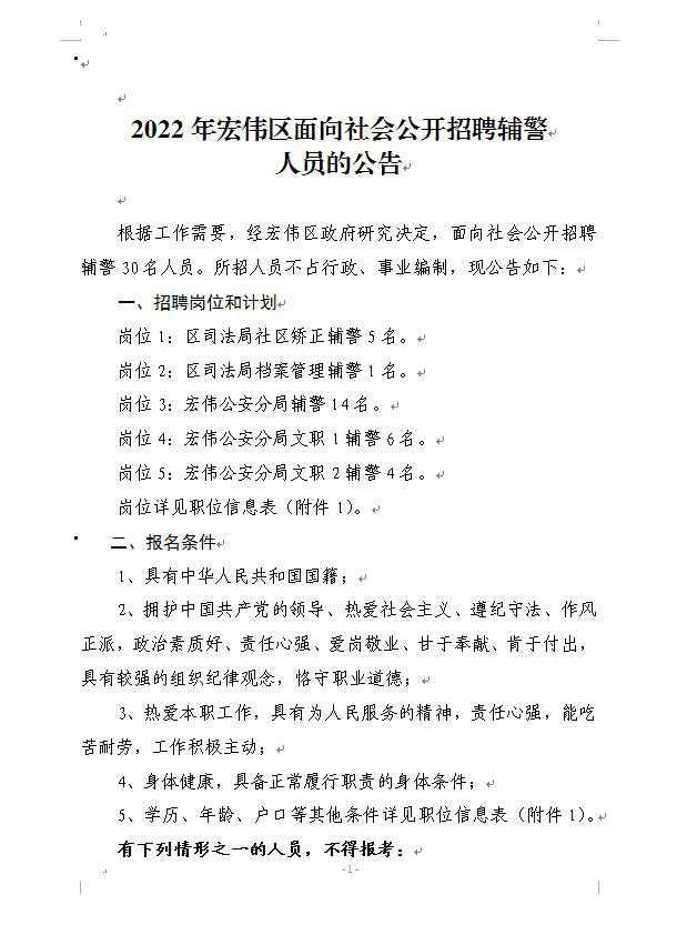 附件1:2022年宏伟区面向社会公开招聘辅警人员职位信息表.xlsx
