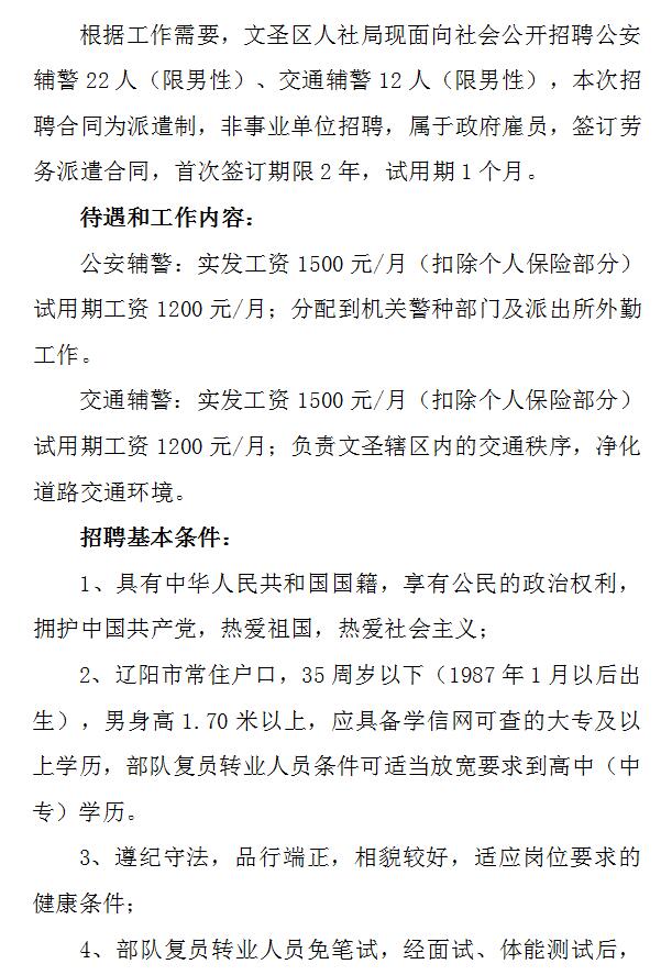 2022年文圣区公开招聘公安辅警、交通辅警人员的简章