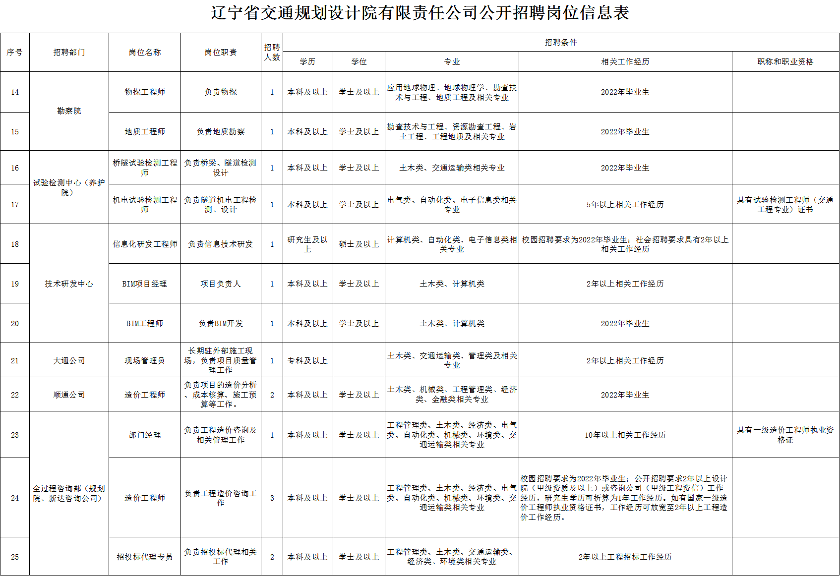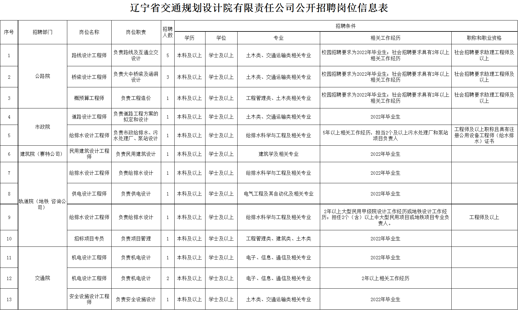 附件:辽宁省交通规划设计院有限责任公司公开招聘岗位信息表