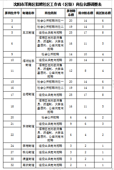 按照《市民政局 市财政局关于开展2022年第二批社区工作者招录工作的通知》,浑南区增加沈阳市实名制社区工作者岗位165个,经研究决定,此次新增沈阳市实名制社区工作者不再另行组织招聘,将在本次招聘的区级社区工作者中择优产生,具体如下:
