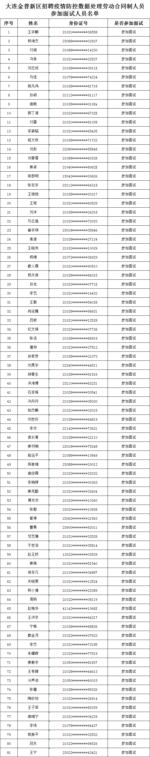 依据疫情防控数据处理工作需要,现将大连金普新区招聘疫情防控数据处理劳动合同制人员计划人数由8人变更为9人,特此补充公告。同时将面试相关事宜通知如下: