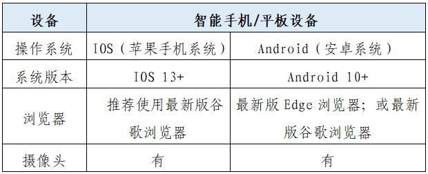 1.带正常上网功能的智能手机或平板设备,必须带有可正常工作的摄像头。
