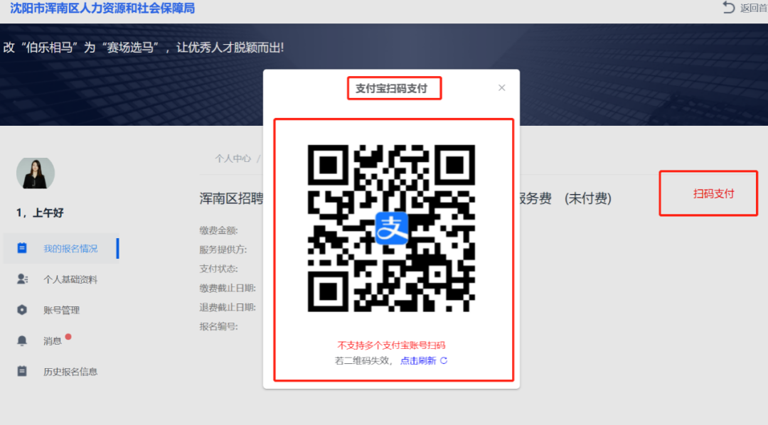 请资格初审通过的考生登录https://hunnan.zhaopin.com(报名网址)进行缴费。在“个人中心”-“我的报名情况”一栏点击“查看缴费”并使用支付宝扫码支付(资格初审未通过的考生无需缴费)。