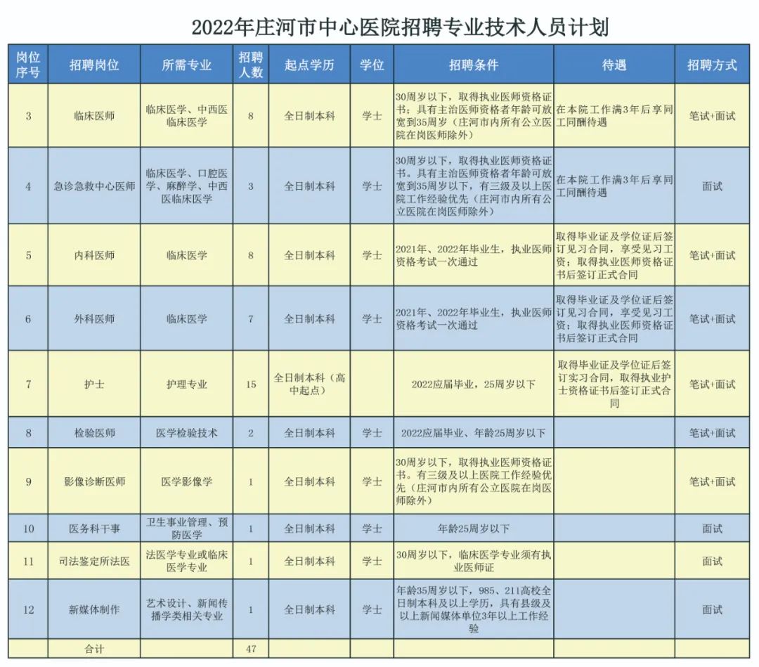 在庄河市中心医院官网和医院公众号同时发布招聘信息,公告时间自2022年6月9日至6月13日。