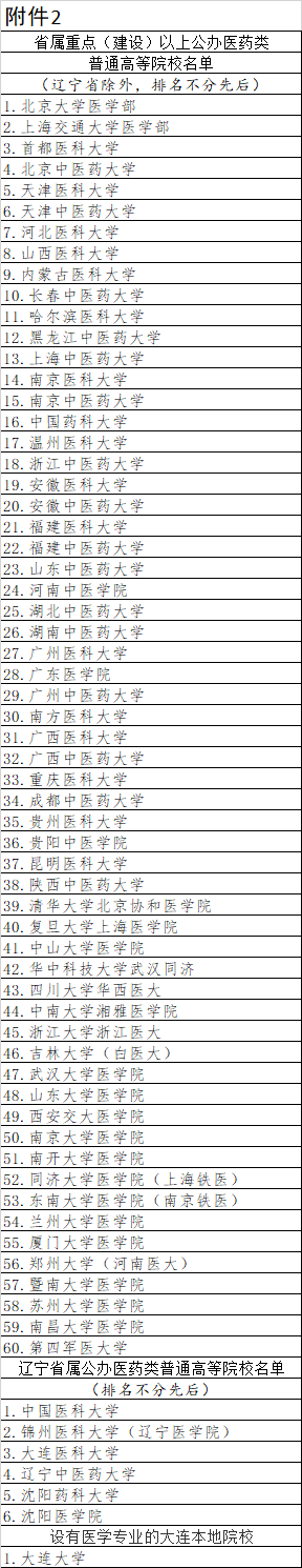 (2)全日制本科学历、学士学位的医疗卫生专业2022应届毕业生,含择业期内未落实工作单位的全日制优秀毕业生(2021、2020届未签订劳动合同、未由单位缴纳社会保险),院校范围为各省属重点(建设)以上公办医药类普通高等院校、辽宁省属公办医药类普通高等院校、设有医学专业的大连本地院校(附件2)。