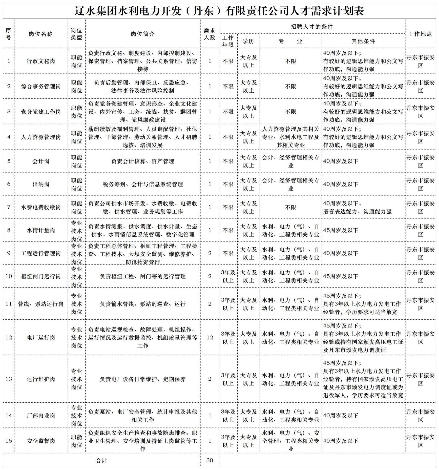附件:1. 辽水集团水利电力开发(丹东)有限责任公司人才需求计划表