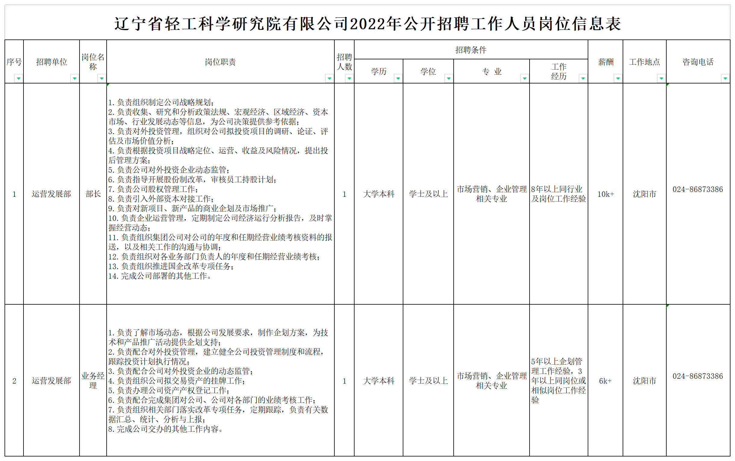 附件:辽宁轻科院2022年公开招聘工作人员岗位信息表