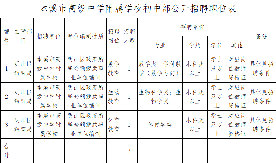 1.本溪市高级中学附属学校初中部面向高校公开招聘教师报名表(附件1)。