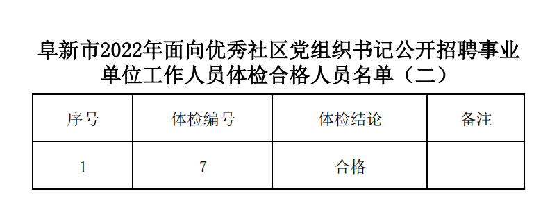 阜新市2022年面向优秀社区党组织书记公开招聘事业单位工作人员 体检合格人员名单(二)