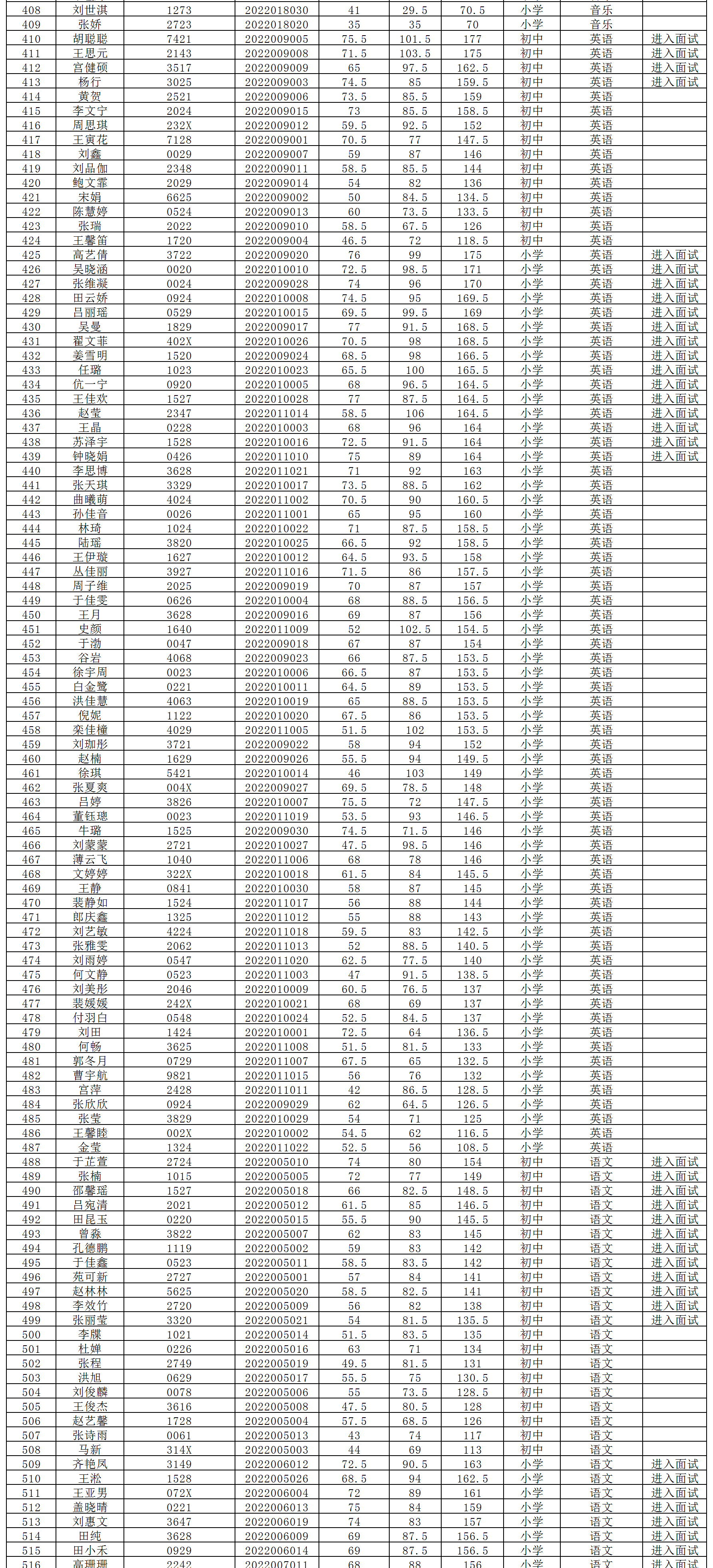现将2022年兴隆台区公开招聘教师笔试成绩公告如下(缺考人员未予公布),并按照招聘的岗位需求数量标明进入面试人员。请进入面试的考生做好面试准备,面试详情请关注兴隆台区人民政府官网。