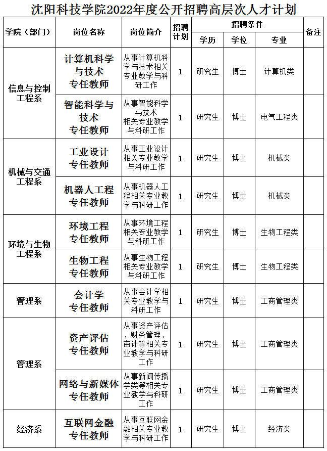 1.本次招聘仅通过沈阳科技学院官方网站、官方微信发布招聘信息,通知形式为沈阳科技学院办公电话,不通过其他途经接收报名信息,报名人员请勿相信其他招聘渠道。