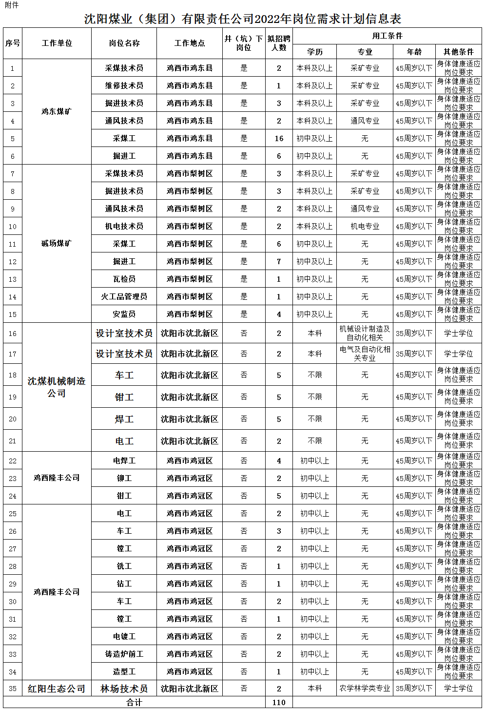 以上资料需整理为压缩文件(文件命名:岗位名称-姓名),分别发送至邮箱:382696755@qq.com(沈煤集团人力资源部)、1761376554@qq.com(鸡东煤矿)、27731861@qq.com(碱场煤矿)、lmjrlzyb@163.com(沈煤机械制造公司)、496927651@qq.com(鸡西隆丰公司)、1761376554@qq.com(红阳生态公司)。