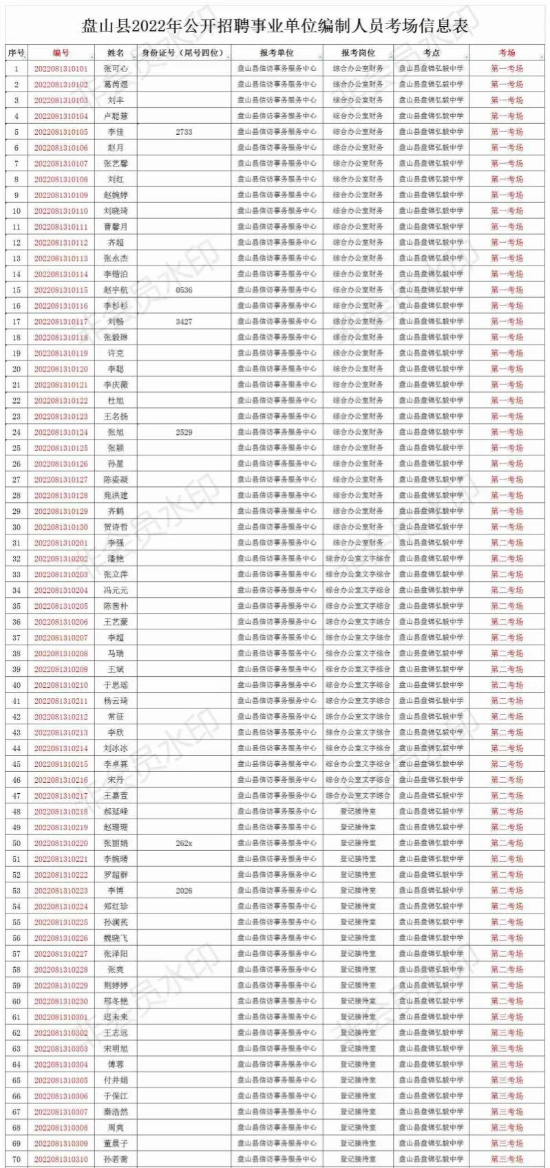 请领取盘山县2022年公开招聘事业单位编制人员笔试准考证的人员,在《盘山县2022年公开招聘事业单位编制人员考场信息表》中查找到本人的考场、准考证编号信息后,服从现场工作人员的安排,主动出示行程卡和健康码,自觉佩戴口罩,到自己考场相应的发放窗口,有序排队领取。