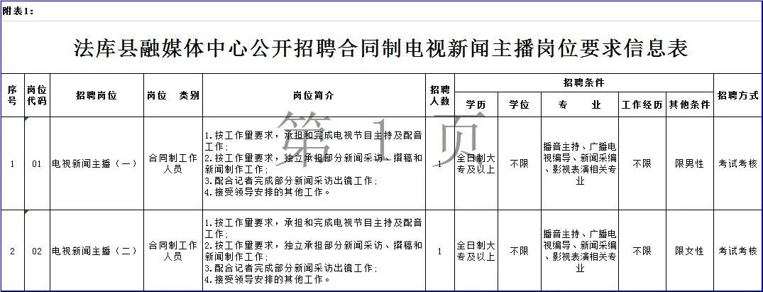 职责要求:详见《法库县融媒体中心公开招聘合同制电视新闻主播岗位要求信息表》(附件1)